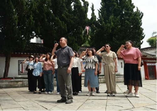 参观结束后,全体党员面对鲜艳的党旗,重温入党誓词,进一步强化入党初心,坚定理想信念,汇聚勇毅前行的力量。