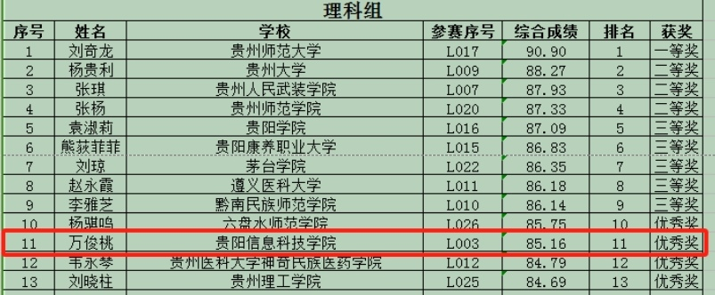 6月20日下午,2024年贵州省高校青年教师教学竞赛在贵州师范大学圆满落幕。据悉,此次竞赛共有全省69所高校、8所附属医院的235名选手参加了此次省级竞赛。学校选派的教师中,公共教学部万俊桃老师荣获理科组优秀奖。获奖的荣誉标志着伟德官网青年教师在贵州省教师教学竞赛的历史上实现了零的突破,展现了我部深化教育教学改革、加强课程建设的显著成效。