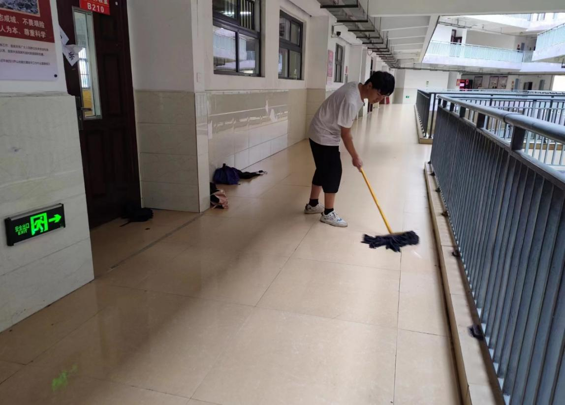 图2 党员同志认真清洁教学楼走廊