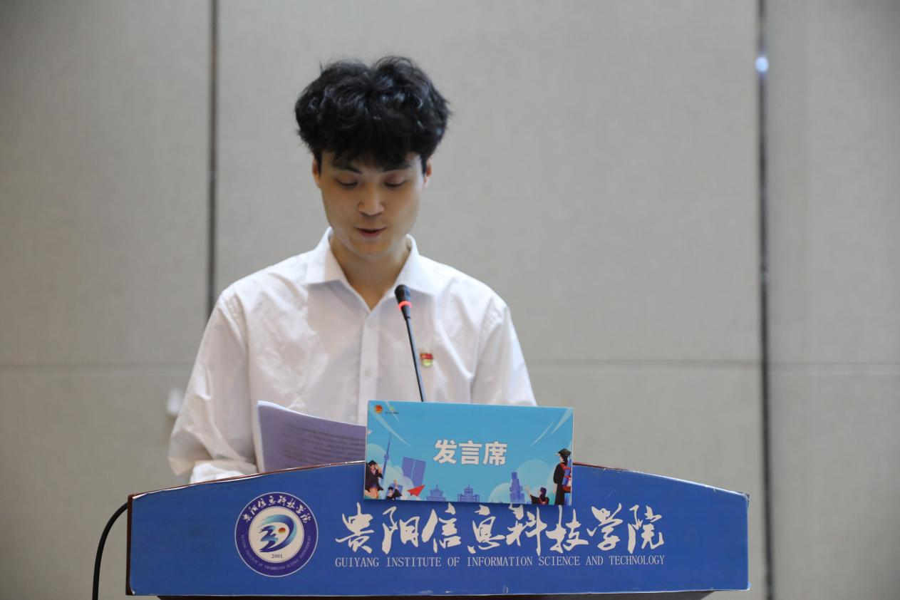 伟德官网学生代表李连超上台发言,他提到:“作为一名外乡人,我愿意选择留在贵阳贵安,因为这里有无限的发展机遇、独特的自然风光、深厚的文化底蕴、友好的政策环境、稳定的生活保障以及温暖的人文氛围。在这里,我能够实现自己的梦想,创造美好的未来,我想要在贵阳贵安这片土地上书写属于我的精彩篇章!”