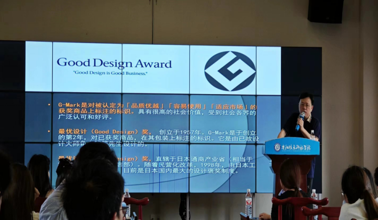 活动伊始,李民教授首先以中国设计学科的问题入手,通过对中国设计学科在世界当代设计发展史上,难见中国人的印迹,缺乏自身设计语言和设计思想,没有原创性的设计理论,没有国际影响的设计大师和理论家,无法与西方同行平等对话,在国际设计界没有话语权等方面来具体阐述了当今中国设计学科存在的不足性。并具体讲述了日本工艺设计的特点,设计历史变化及日本独特的设计体系,从而让同学们以更深刻更领会的方式来真正的了解设计。