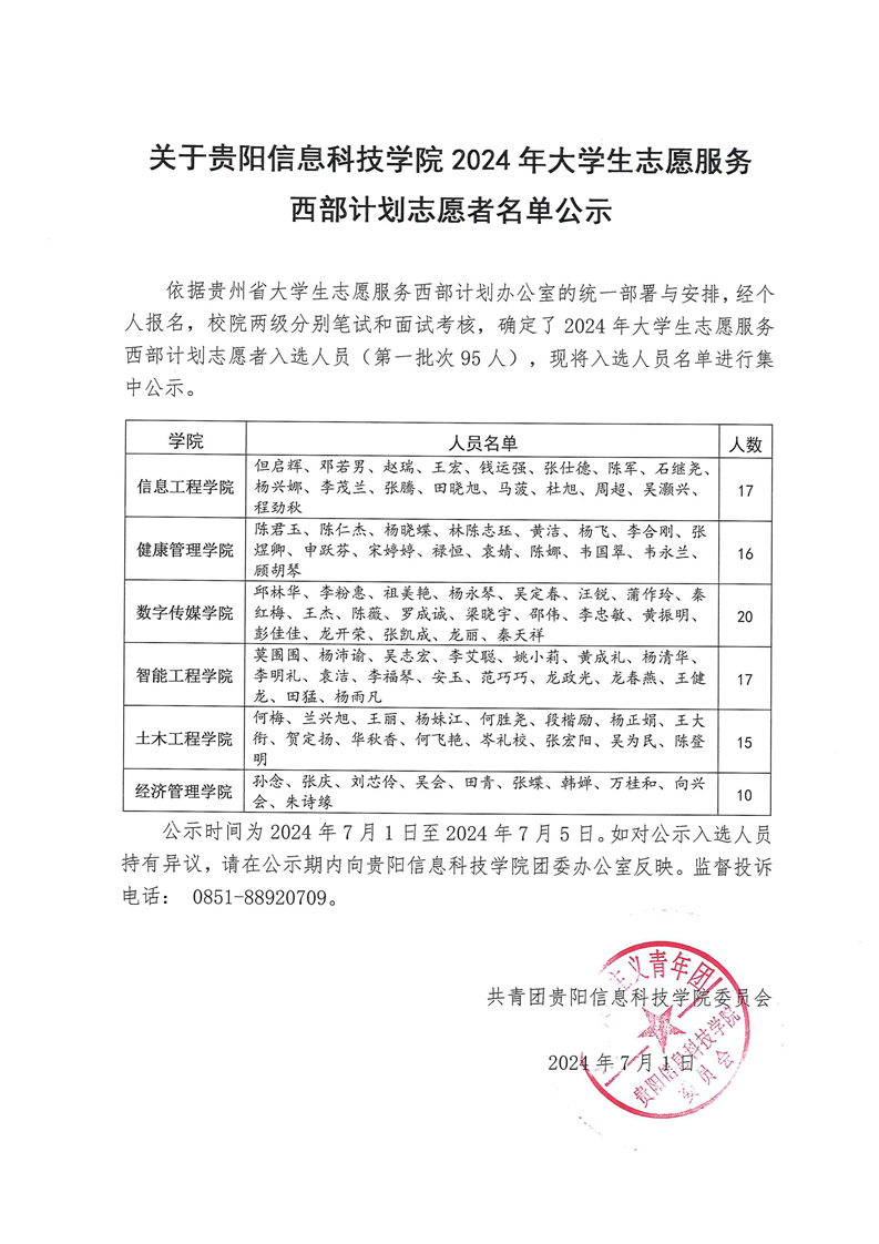 关于BV伟德中国官方网站2024年大学生志愿服务西部计划第一批志愿者录取名单公示