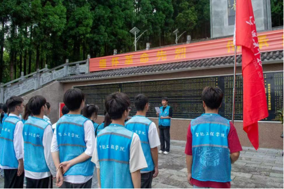 随后,实践队又前往绥阳县烈士陵园,瞻仰烈士纪念碑。全体队员怀着崇敬之情在主持人的引领下为先烈默哀,并对陵园进行清扫。