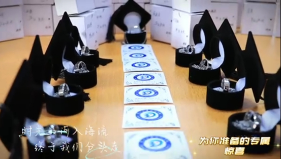 学校领导为20级毕业生揭幕“惊喜礼物”,该礼物是智能工程学院为毕业生们定制的专属毕业纪念戒指,戒圈外侧印有校徽及校名字样,戒圈内侧刻有毕业生姓名、学号。行有所戒,情有所指,这一枚戒指,饱含着智能工程学院对20级学子的勉励,希望他们在未来的人生旅程上,能够戒骄戒躁、戒去浮华、戒去伪饰,朝着信念所指、使命所指、梦想所指的远大目标,奋勇前进,不辞江阔山高,敢与日月争辉!