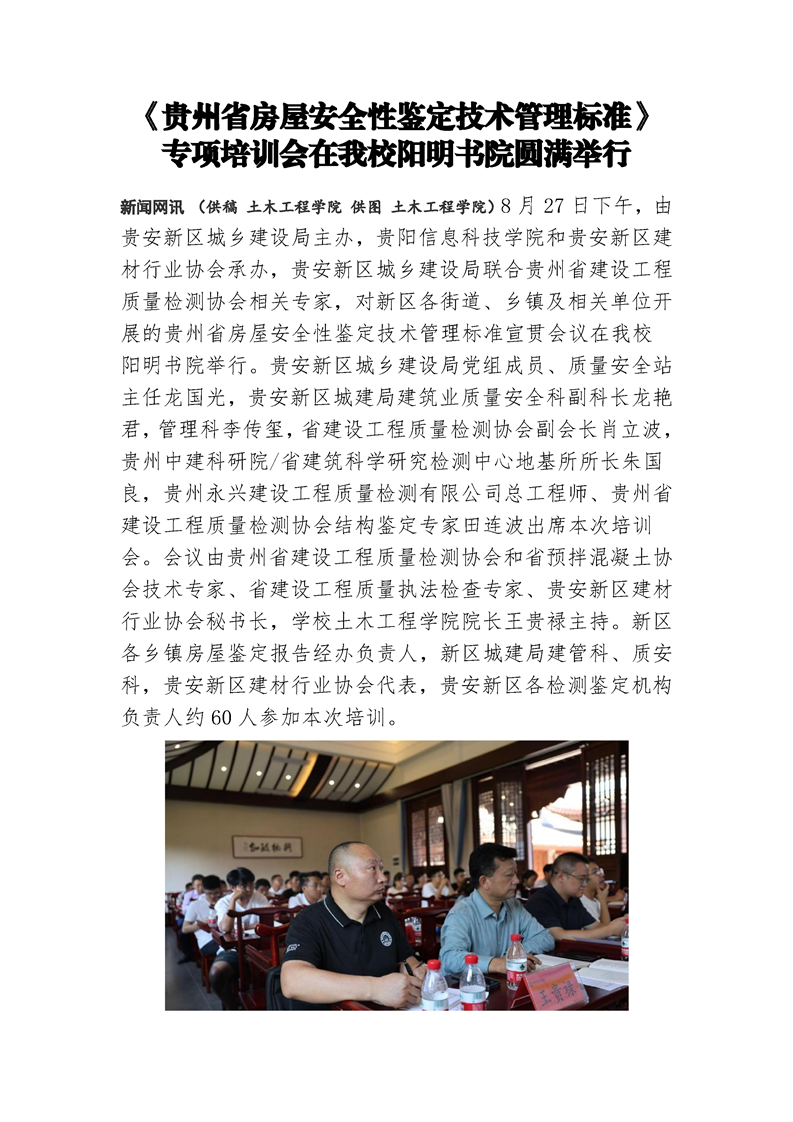 《贵州省房屋安全性鉴定技术管理标准》专项培训会在伟德官网阳明书院圆满举行