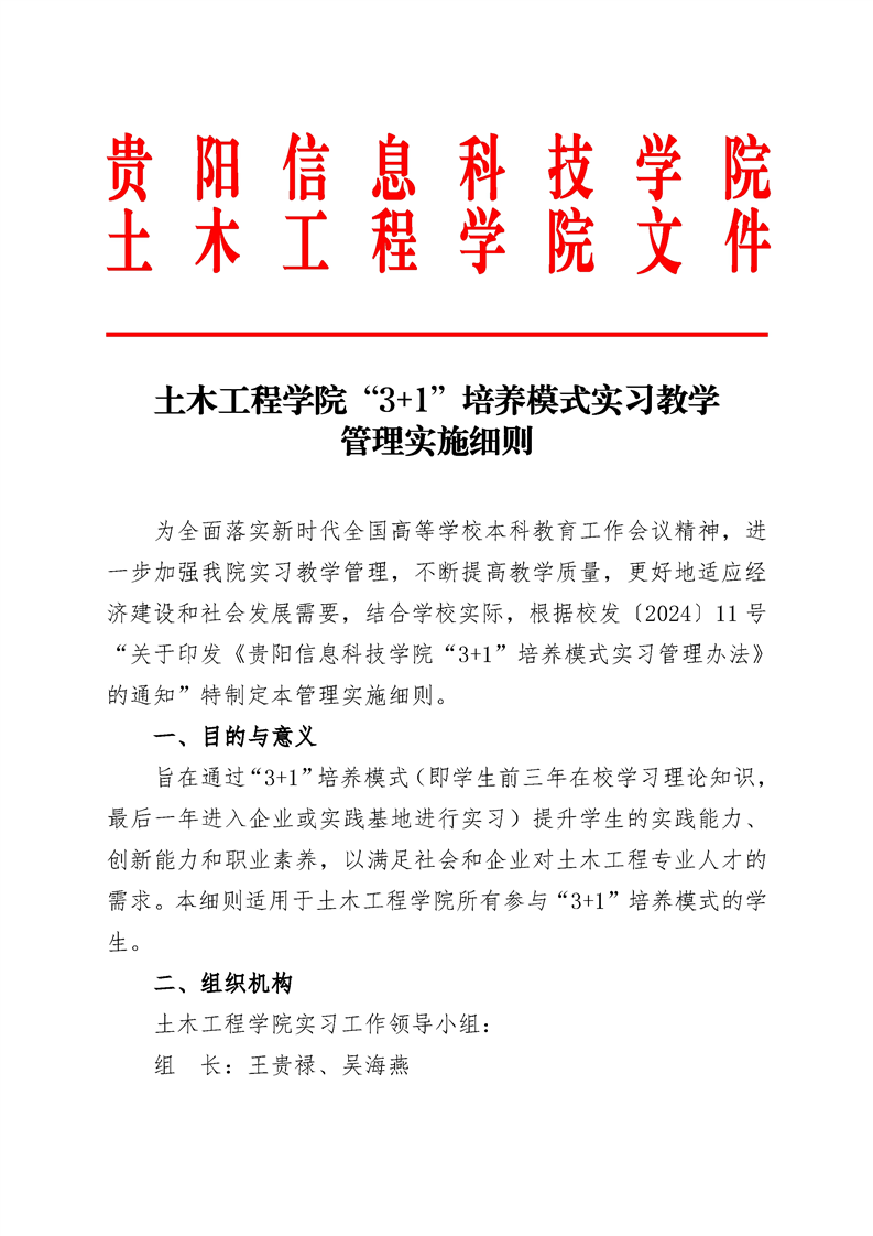 土木工程学院“3+1”培养模式实习教学 管理实施细则