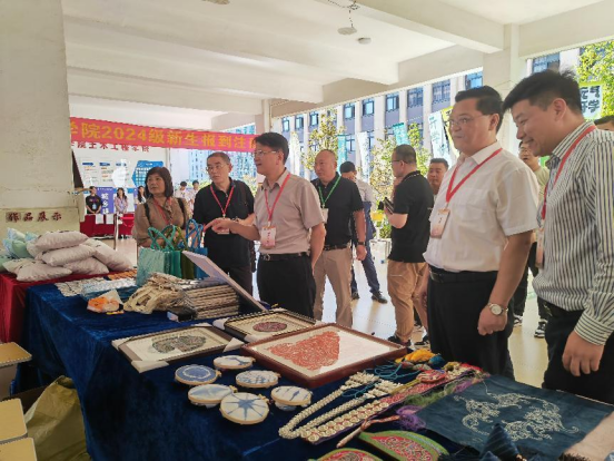 江西文演集团党委委员、副总经理柯亨龙,贵州省教育厅民办高校党组织书记、学校党委书记邓维实、学校校长唐建荣等一行校领导和院领导也亲临现场指导迎新工作,并参观土木有未手工社学生创意作品和扎染体验区,对土木学子的创意作品表示极大认可。各级领导亲临土木工程学院迎新现场,为我院增光添彩,也为新生的到来保驾护航。