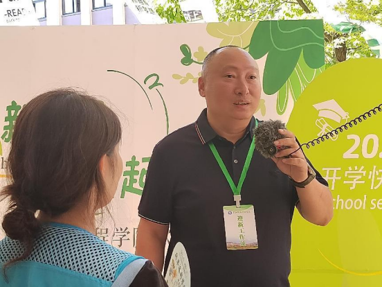图为宣传组对新生们进行采访)