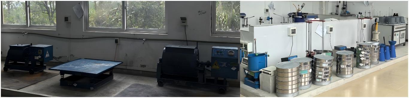 该实验室主要设备:砂石细度模数测定仪、砂浆搅拌机、混凝土搅拌机、砂浆渗透仪、混凝土渗透仪、砂浆稠度仪、混凝土稠度仪等检测设备。该实验室开出的主要课程实验有:(1)混凝土强度实验;(2)混凝土抗渗性能实验;(3)砂浆强度实验;(4)砂浆分层度试验、(5)砂石的性能实验等相关实验。