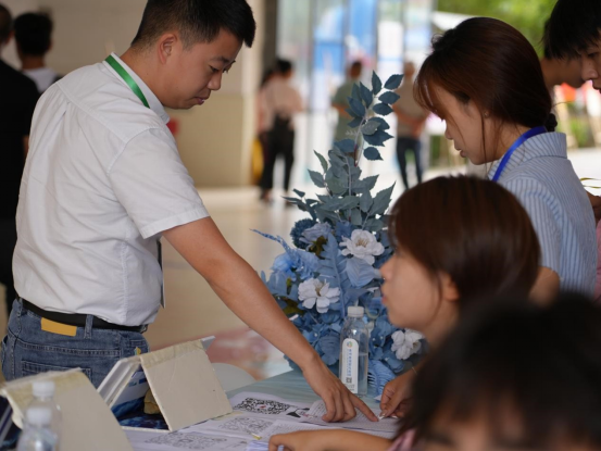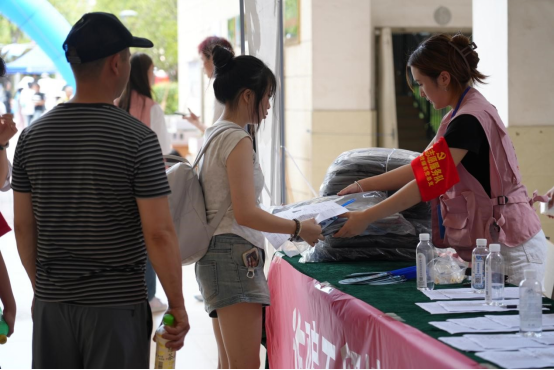 迎新现场,数字传媒学院的志愿者们身着整齐的粉红色马甲,各司其职,热情地迎接来自四面八方的新生,耐心为新生解答疑惑、指引方向、办理报到手续、分发入学大礼包、宣传反诈知识;老师们也在现场为新同学提供专业问题解答。师生们亲切的问候和贴心的服务,传递了数字传媒学院喜迎新生的热忱,让新生们得以快速地融入了贵科大家庭。