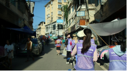 据点上,队员们拉上横幅、摆上桌子,扯开嗓子,街上的行人对这些新鲜的面孔感到好奇,驻足围观。队员们主动出击,向驻足的群众们宣传法律、防范诈骗、抵制毒品以及增强传染病预防等知识,取得重大反响。