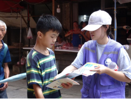 活动前期,实践队做好各项准备工作,选取当地赶场时日,以此提高宣传力度,达到宣传效果。上午8时,实践队整装待发前往郑场镇中学旁的街道开展宣传活动,活动分为四个小组,一组驻守据点进行现场宣传,另外三组走入街头巷尾一对一讲解。