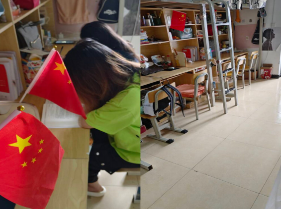 该寝室以国旗的红、黄两色为主色调,展现鲜明的主题色彩。设计主题突出对国旗的敬意以及对国家的热爱在寝室的体现,利用红色和黄色的布料、彩带等装饰寝室,营造热烈的氛围。通过这样的装扮,让寝室成员时刻感受到国旗所代表的伟大意义和国家的荣耀,激发大家的爱国热情和民族自豪感,同时也强化大家对寝室这个小集体的归属感和责任感,在充满爱国情怀的寝室中共同成长进步。