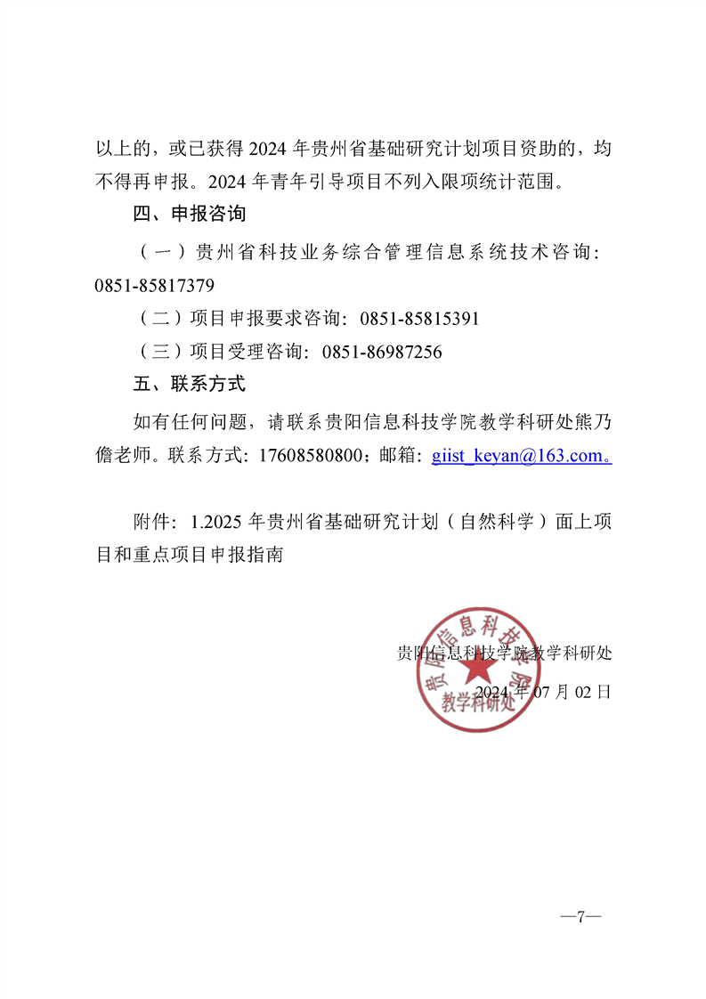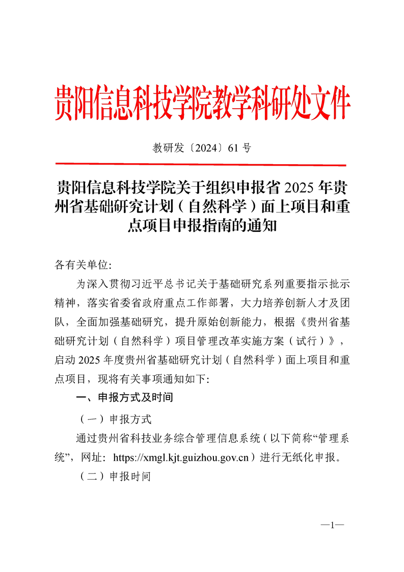 BV伟德中国官方网站关于组织申报2025年贵州省基础研究计划(自然科学)面上项目和重点项目申报指南的通知