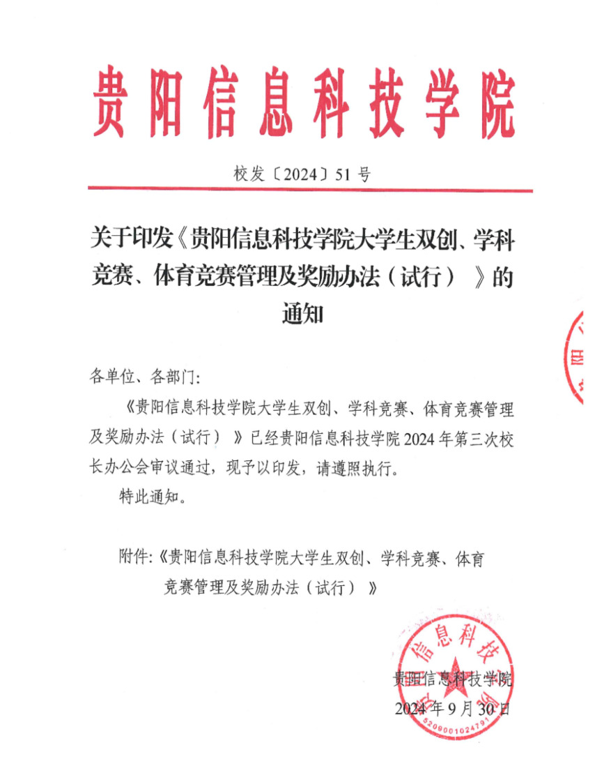 校发〔2024〕51号-关于印发《BV伟德中国官方网站大学生双创、学科竞赛、体育竞赛管理及奖励办法(试行) 》的通知.doc