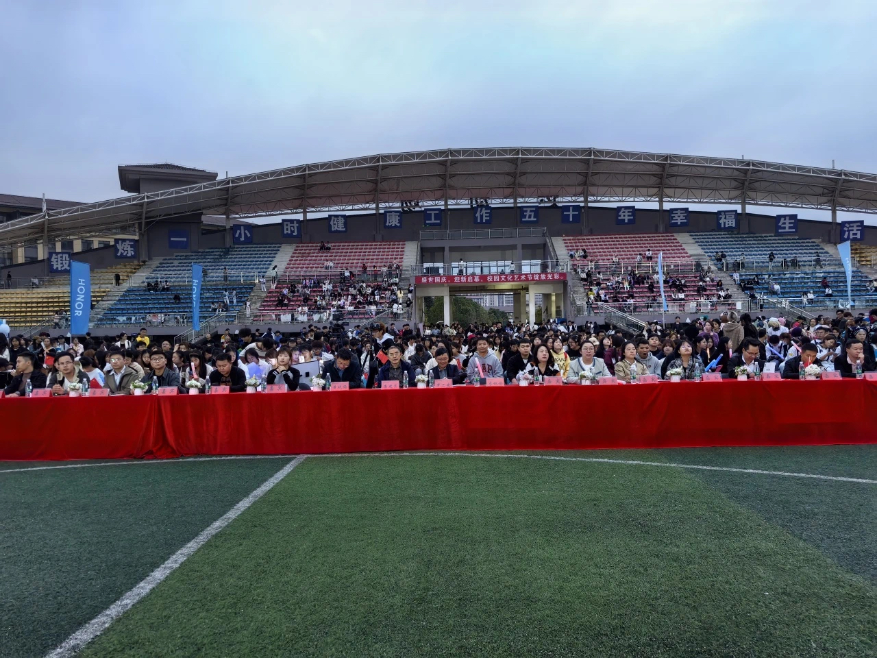 为表达对2024级新生们到来的喜悦与热烈的欢迎。在国庆节欢悦氛围的余温中,2024年10月12日晚18:30,BV伟德中国官方网站在一号足球场举办了“多彩校园·闪亮青春”迎新晚会暨校园文化艺术节活动。校长(首席治校专家)唐建荣,党委委员、副校长罗卫东,党委委员、纪委书记黄晓儒,校长助理、数字传媒学院院长李锐锋,荣耀终端有限公司中国区“荣耀制噪者”项目经理刘倩伶,荣耀公司贵州业务部品牌经理杨晓雪应邀参加此次活动。各学院师生代表共计上千余人共赴这场视听盛宴。