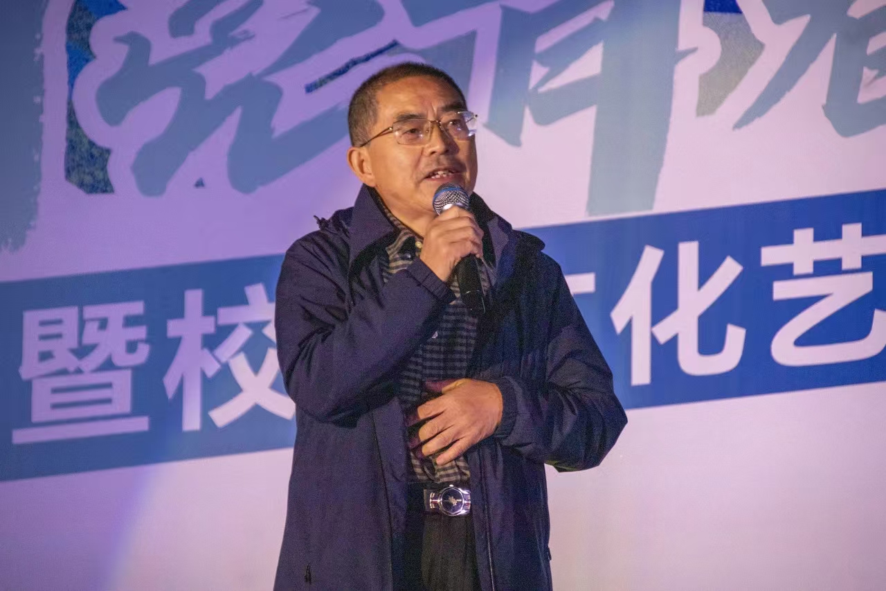 此情此景,彼时彼刻,伟德官网校长唐建荣在贵科人满满的期待和热烈的掌声中登上舞台。在这大美视觉盛宴中用一首《好酒歌》将现场氛围再度升华。夜晚恰到好处的微风,纯净的蔚蓝色舞台,交相辉映的灯光,分外美丽。《好酒歌》亲切的歌词,唐校长高昂的歌喉,豪迈磅礴的旋律。既淋漓尽致地赞美了贵州的茅台酒,又道出了贵州人民的热情好客。此刻,贵科人好似再度回归贵州本真、美好的乡情当中,愉悦、惬意。