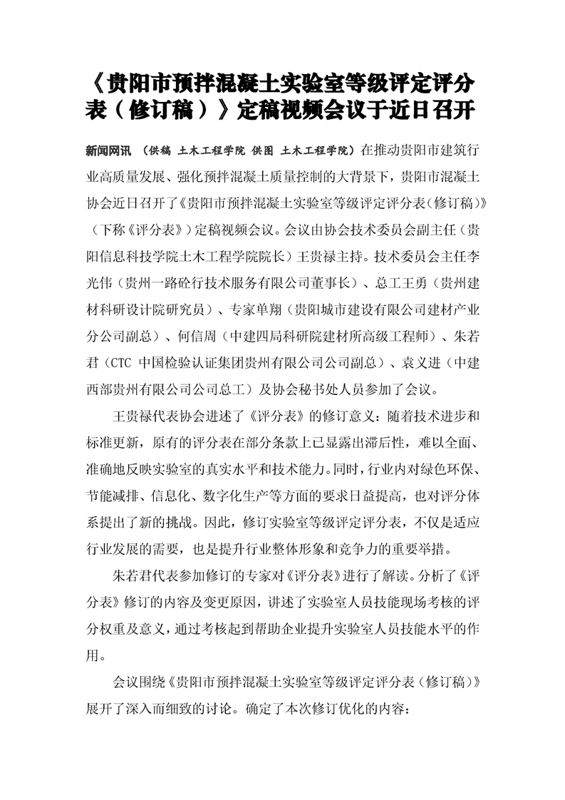 《贵阳市预拌混凝土实验室等级评定评分表(修订稿)》定稿视频会议于近日召开