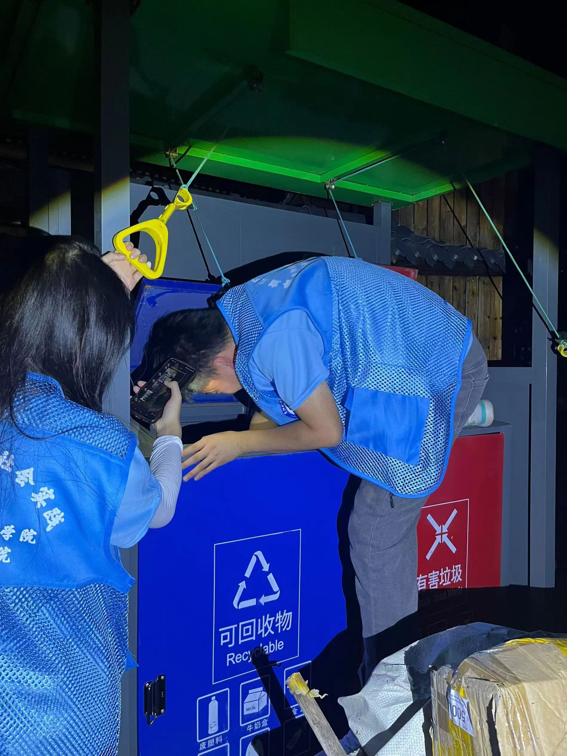 志愿者进行垃圾分类