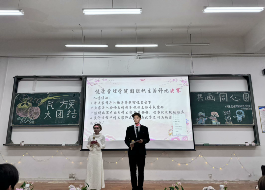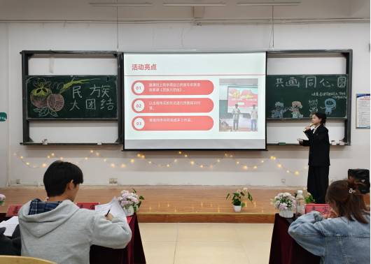 2024年10月28日晚,BV伟德中国官方网站健康管理学院团总支、学生会在F103教室举办了以“民族大团结,共画同心圆,志同道合携手构建人类命运共同体”为主题的团组织生活评比活动。此次活动旨在弘扬中华优秀传统文化,增进各民族之间的交流和交融,共同绘制中华民族伟大复兴的美好蓝图。
