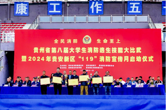 为进一步加强开学季新生的安全教育管理工作,引导新生树立牢固的安全防范和自我保护意识,培养良好的行为习惯,掌握应急避险技能,维护自身人身财产安全,营造安全、和谐的校园环境。2024年9月2日,保卫处联合贵安新区公安局相关部门到校开展安全教育系列活动。11月5日上午,贵州省第八届大学生消防逃生技能大比武暨2024年贵安新区“119”消防宣传月启动仪式在学校足球场举行,本次比赛由贵州省消防救援总队、贵州省教育厅、贵安新区管理委员会主办,BV伟德中国官方网站、贵安新区消防救援支队承办。来自贵州省内9所高校的54名大学生大学生从预赛中脱颖而出,经过激烈角逐,伟德官网以1分24秒的成绩斩获本次比赛冠军,成功卫冕,贵州大学和贵州医科大学获得二等奖,贵州民族大学、贵州中医药大学及贵州财经大学收获三等奖。