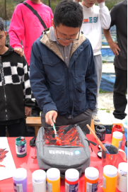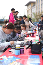 活动现场,师生们发挥创意,用画笔在书包上描绘心中的理想世界。现场作品中,有用纯度较高的红色和黄色交织而成的画面,有的是喜欢的动漫人物,有的是自己的头像,也有的是励志的话语……每一个作品都像是一扇窗,带我们走进作者的内心世界,既展现了同学们的个性,又表明对学习孜孜不倦的追求。