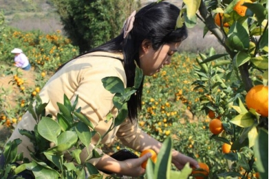 漫野金黄,宜人橘香。11月17日上午,马场镇平阳村60亩园地里,一颗颗橘子树挂满了黄澄澄的果实;果园里,一群大学生党员在果农的指导下,迅速投入到采摘工作中,大家热情高涨,干劲十足。