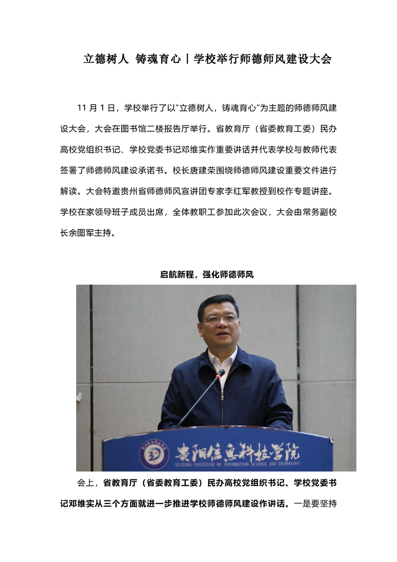 立德树人 铸魂育心丨学校举行师德师风建设大会