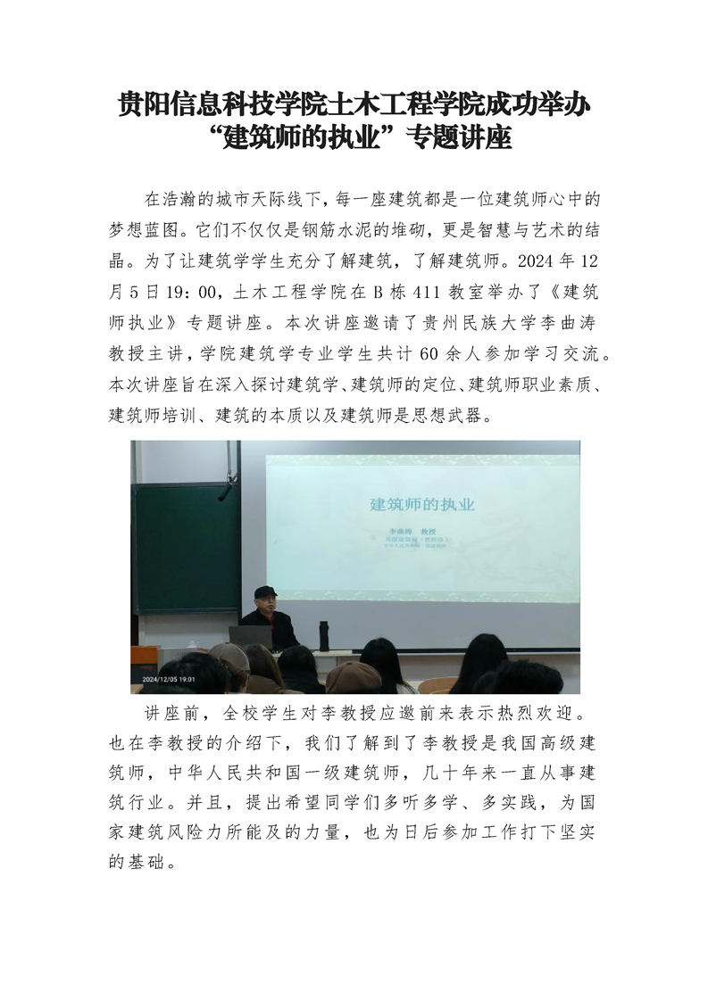 BV伟德中国官方网站土木工程学院成功举办 “建筑师的执业”专题讲座
