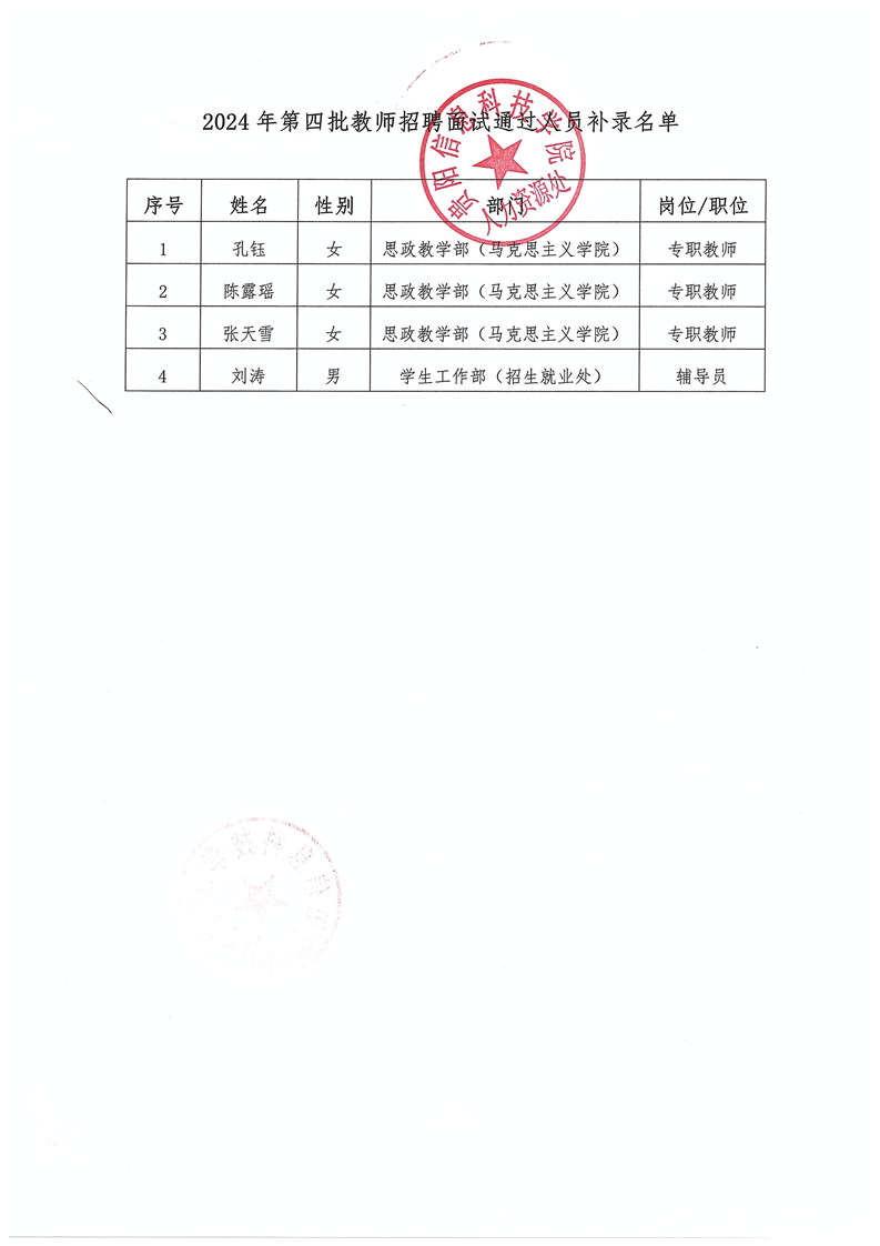 关于BV伟德中国官方网站2024年第四批教师招聘面试通过人员补录名单公示