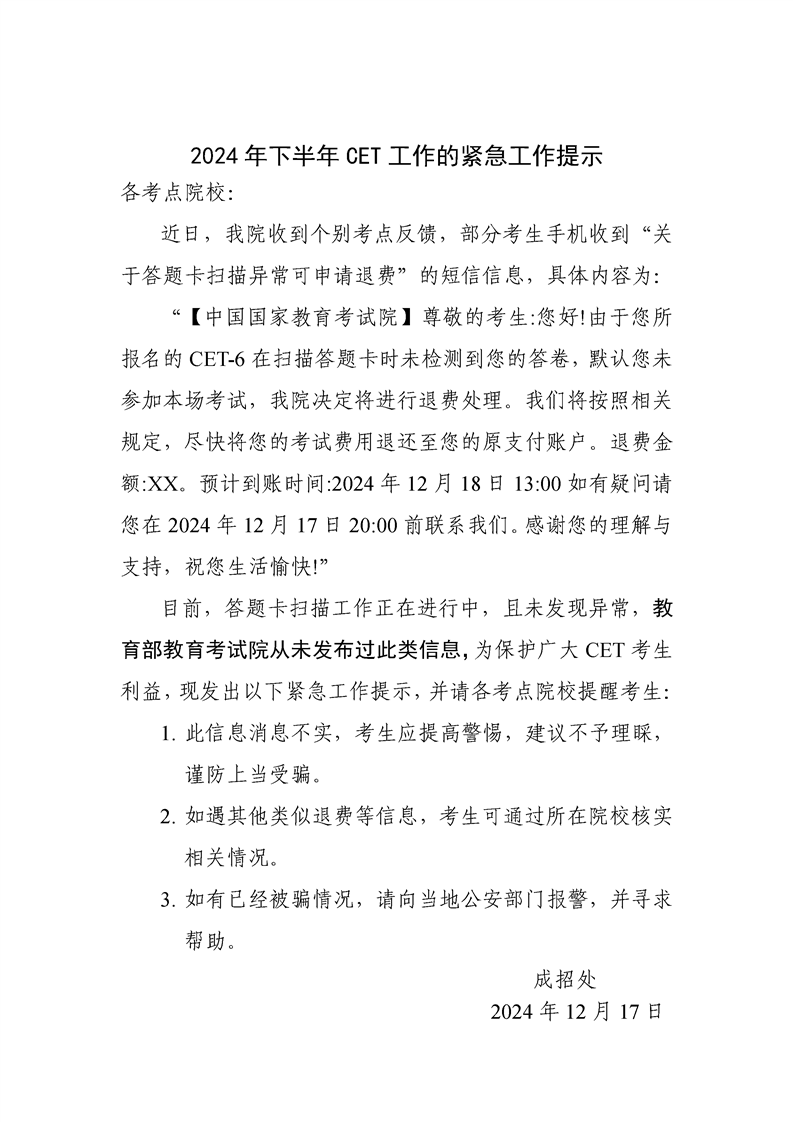 2024年下半年全国大学英语四、六级考试紧急工作提示