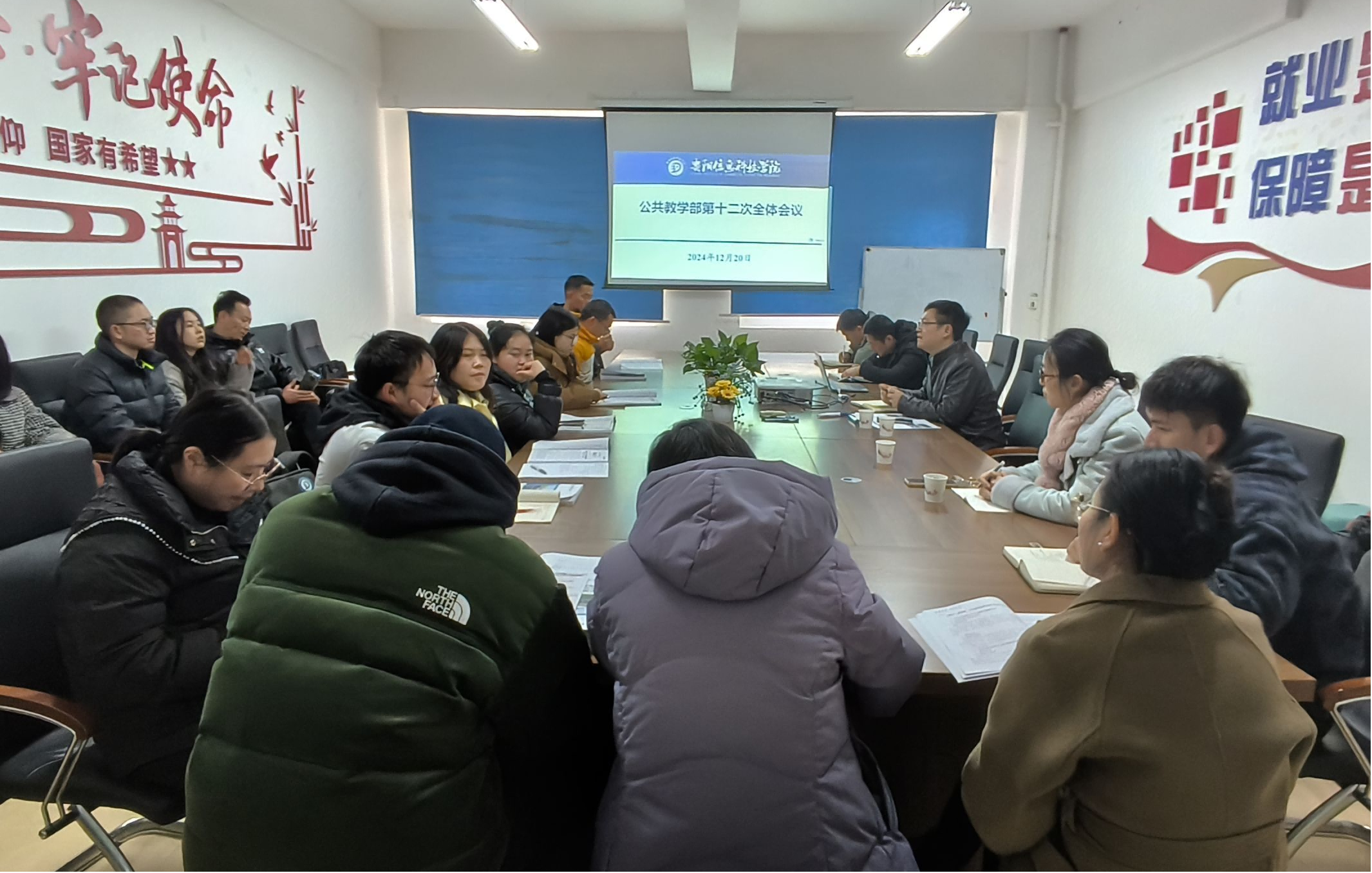 2024年12月20日,公共教学部第十二次部门例会在A栋205召开,江林焱老师主持会议,本次会议邀请了伟德官网唐建荣校长、罗卫东副校长对我部门工作进行指导,与会人员还包括数学教研室、外语教研室、基础体育教研室、数字技术教研室、物理教研室的全体教师。