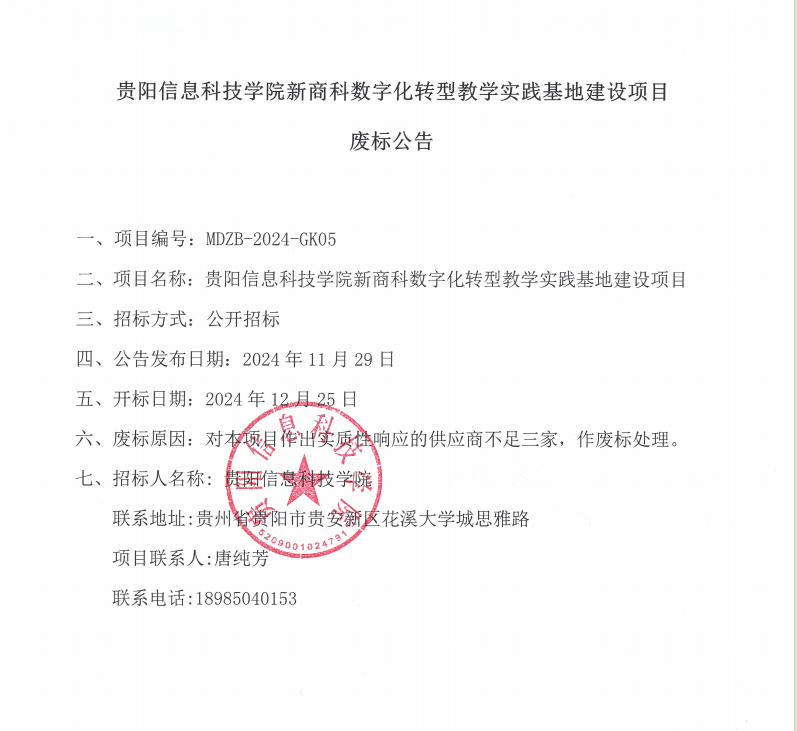 BV伟德中国官方网站新商科数字化转型教学实践基地建设项目废标公告.pdf