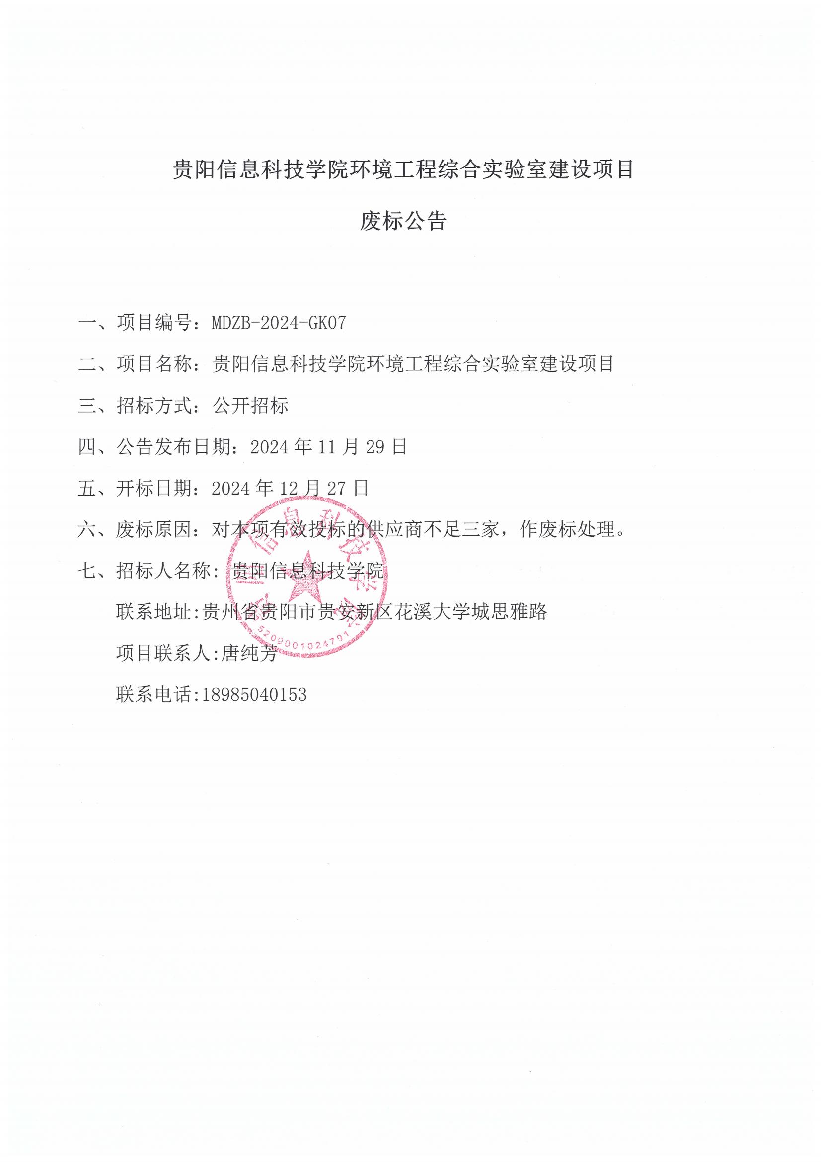 BV伟德中国官方网站环境工程综合实验室建设项目废标公告.pdf
