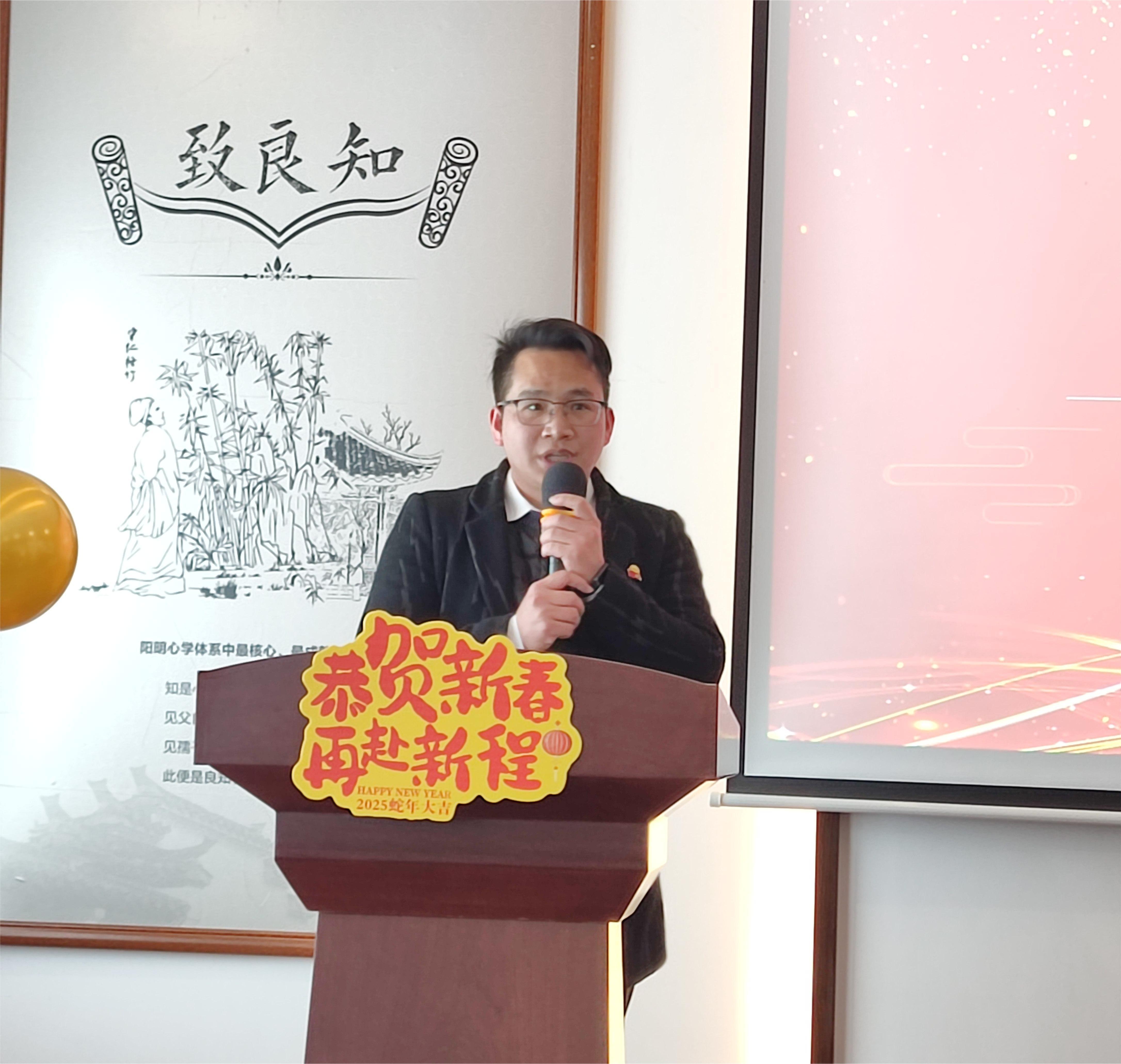 最后,学院党总支书记莫建活为全体教职工送上了温馨而鼓舞人心的新年寄语。他回顾了学院在2024年以来以习近平新时代中国特色社会主义思想为指导,坚持高质量党建引领,团结一心在立德树人、教学科研、社会服务等方面取得的突破性进展。莫书记鼓励全体教职工在新的一年里继续奋楫笃行,勇攀高峰,为经济管理学院的蓬勃发展贡献智慧和力量。他祝愿全体教职工新年所愿皆成真,平安喜乐,事业有成。