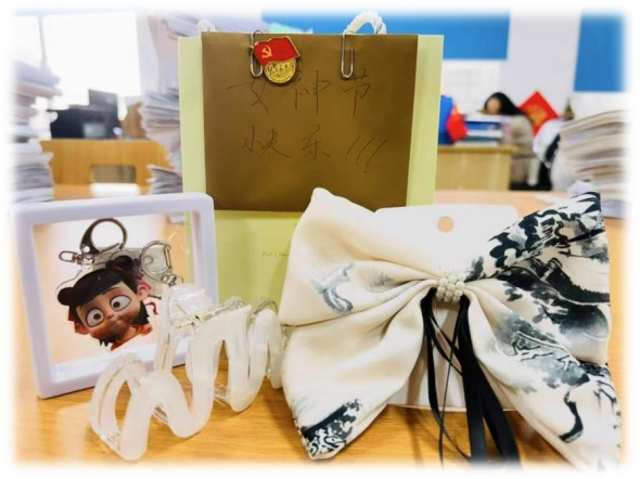 清晨,党建助理们早早来到办公室,手拿贺卡和精心挑选的小礼物,等待老师们的到来。每一份礼物都承载着学生对老师的感恩之情。