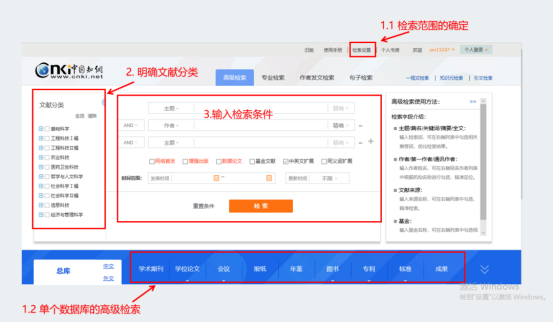 方法二:在高级页面下方进行数据库的切换,进入对应单个数据库的检索范围。