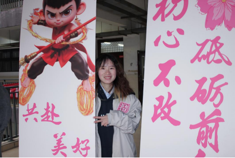 现场的同学们打卡热情高涨,其中,数字媒体技术2302班的陈化仙说到:“《哪吒2之魔童闹海》是新出的一部特别火的电影,来报到的时候就发现学校将电影里面的台词制作成了横幅挂在道路旁,有开学的气息了。到学院后,看到布置的打卡现场,满满的氛围感。新的一年,我们要像电影中的哪吒一样充满青春的豪情和勇气,面对命运的不公时,要有不服输、不怕苦难的精神,努力学习,争创好成绩。”
