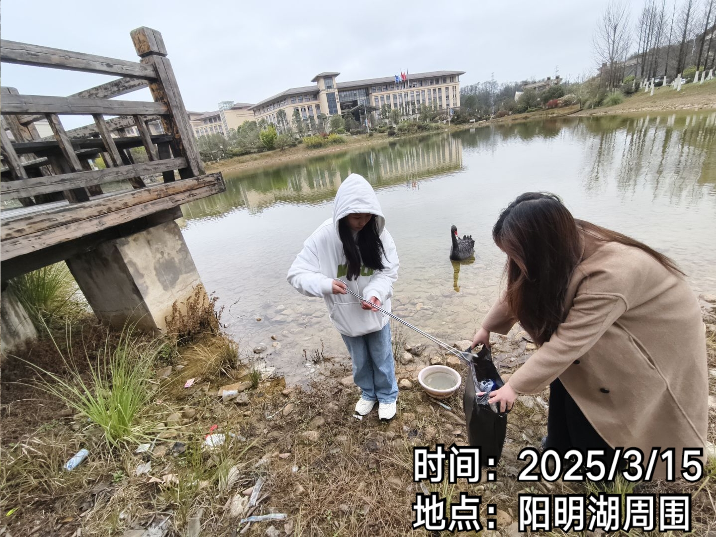 活动过程中大家分工明确,密切配合。有的志愿者负责清扫学生公寓及其中间小道,他们认真细致,弯腰俯身,不放过任何一个烟头、纸片和塑料瓶等杂物;有的志愿者则专注于阳明书院及其阳明湖周围的清洁,面对隐藏在草丛深处的垃圾,他们小心翼翼地将藏在里面的纸屑、包装袋用钳子夹出,为花草树木创造了更加良好的生长环境;还有的志愿者深入校园的运动场以及篮球场,他们沿着跑道拾起废弃的饮料瓶,清扫休息长椅周边的杂物,为同学们创造一个整洁、舒适的运动环境。