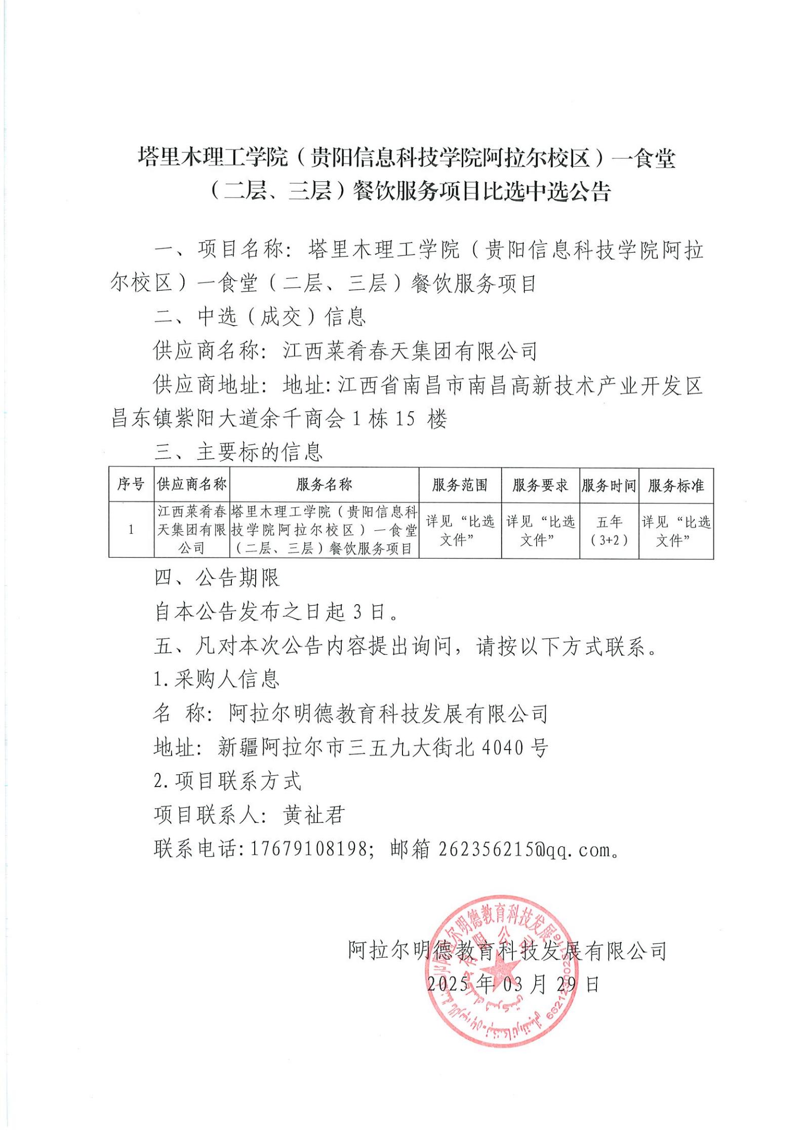 塔里木理工学院(BV伟德中国官方网站阿拉尔校区)一食堂(二层、三层)餐饮服务项目比选中选公告