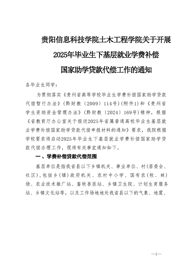 BV伟德中国官方网站土木工程学院关于开展2025年毕业生下基层就业学费补偿国家助学贷款代偿工作的通知