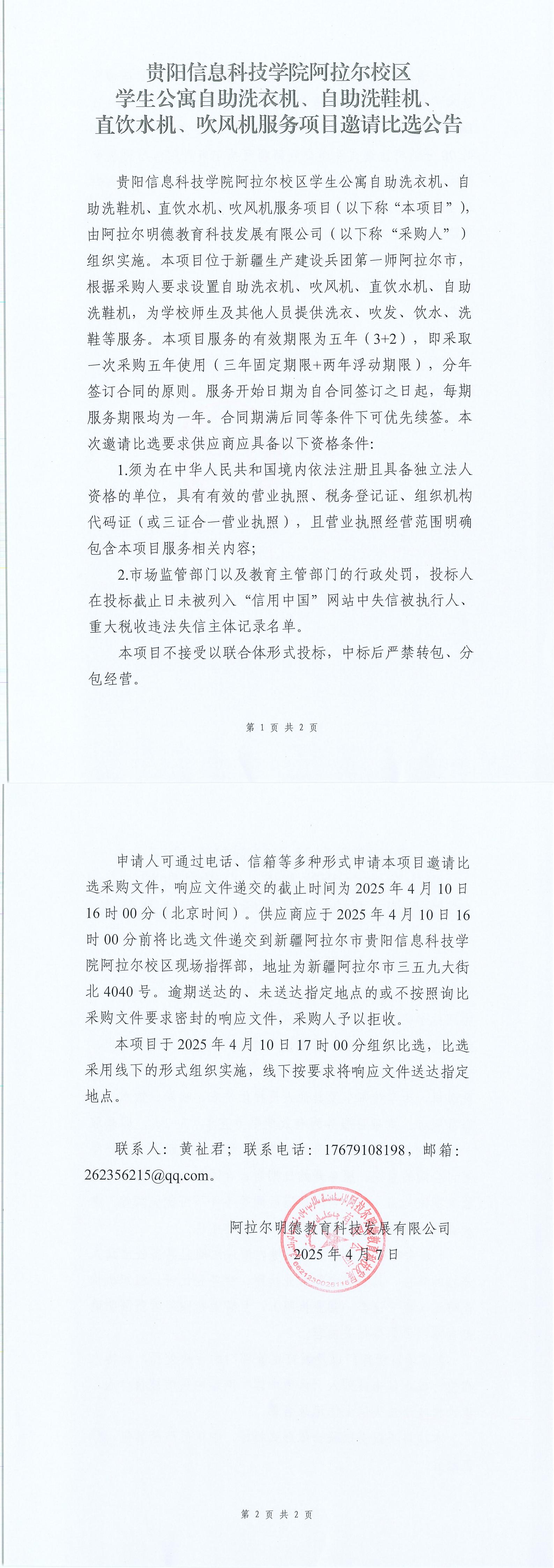 BV伟德中国官方网站阿拉尔校区学生公寓自助洗衣机、自助洗鞋机、直饮水机、吹风机服务项目邀请比选公告