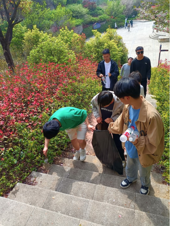 活动当天,团支部成员分为多个小组,在负责人的带领下共同开展环境美化劳动实践。随着一声令下,志愿者们手持清理工具迅速分散到公园的各个角落,开始了紧张而有序的清扫工作。他们有的弯腰捡拾草丛中的烟蒂、塑料袋,整理绿化带,有的细心清理座椅下的零食碎屑,还有的则负责擦拭公园内的指示牌和长椅,每一处细节都不放过。一个个辛勤劳动的身影在晨光中显得格外耀眼,他们的笑声和欢呼声成为了这场公益行动中最动听的旋律。