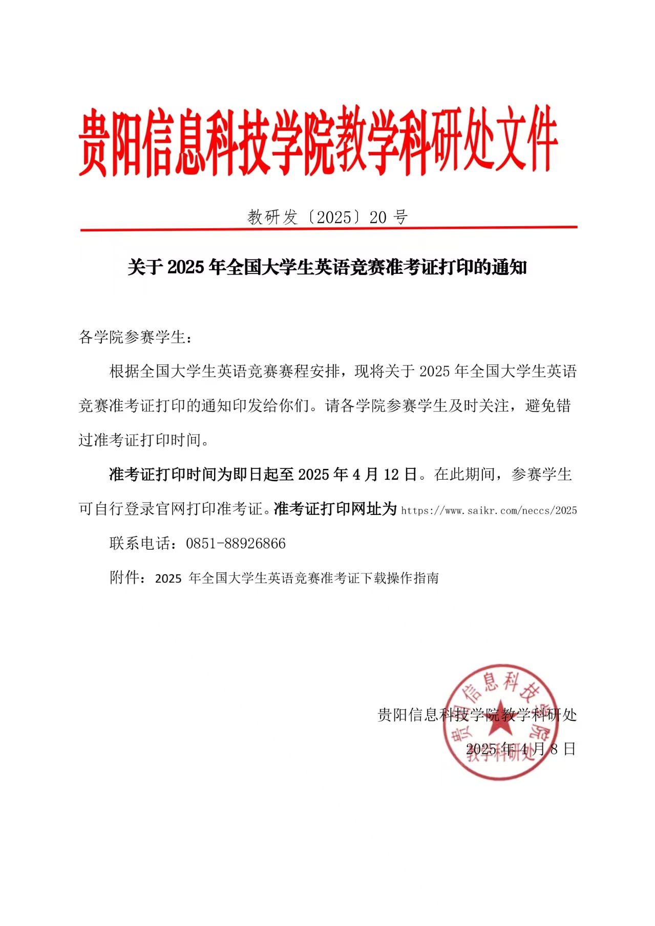 关于 2025 年全国大学生英语竞赛准考证打印的通知