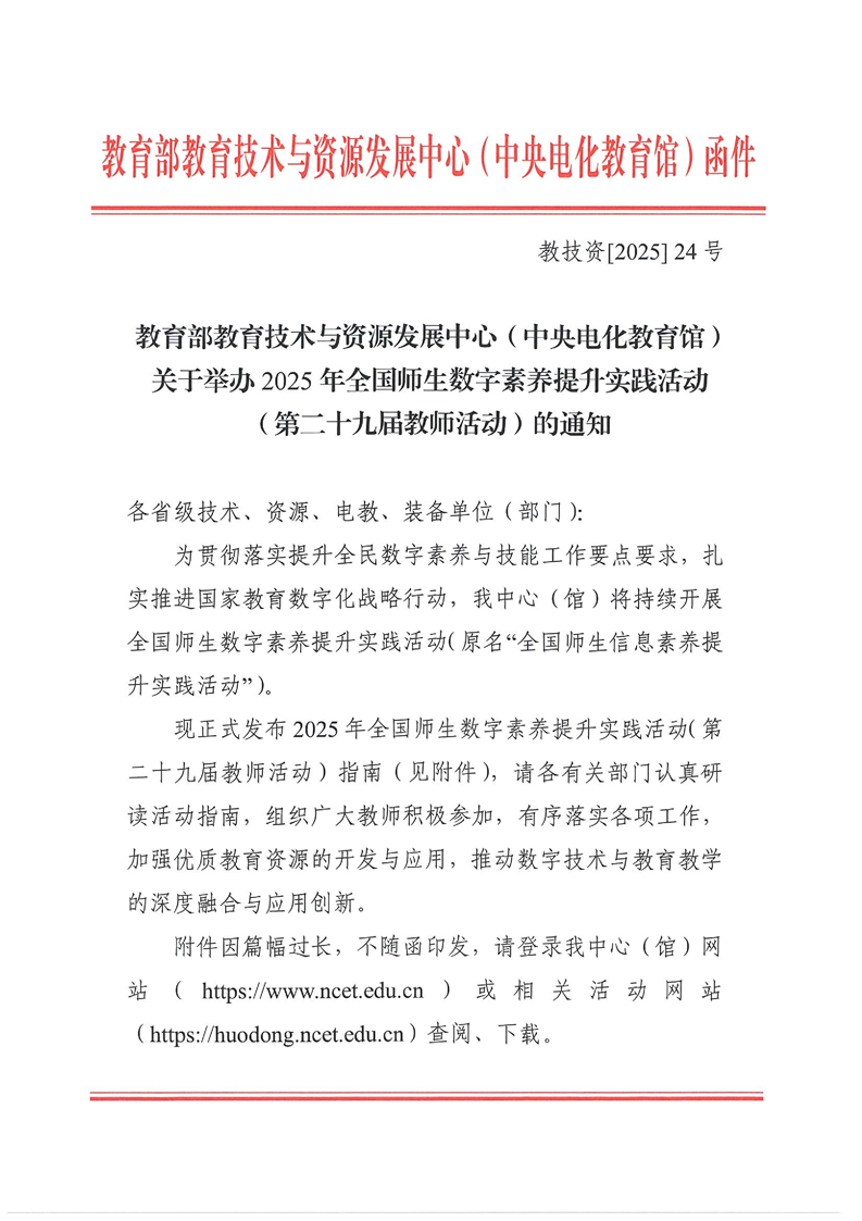 省电化教育馆关于组织参加教育部教育技术与资源发展中心(中央电化教育馆)2025年全国师生信息素养提升实践活动(第二十九届教师活动)的通知.pdf