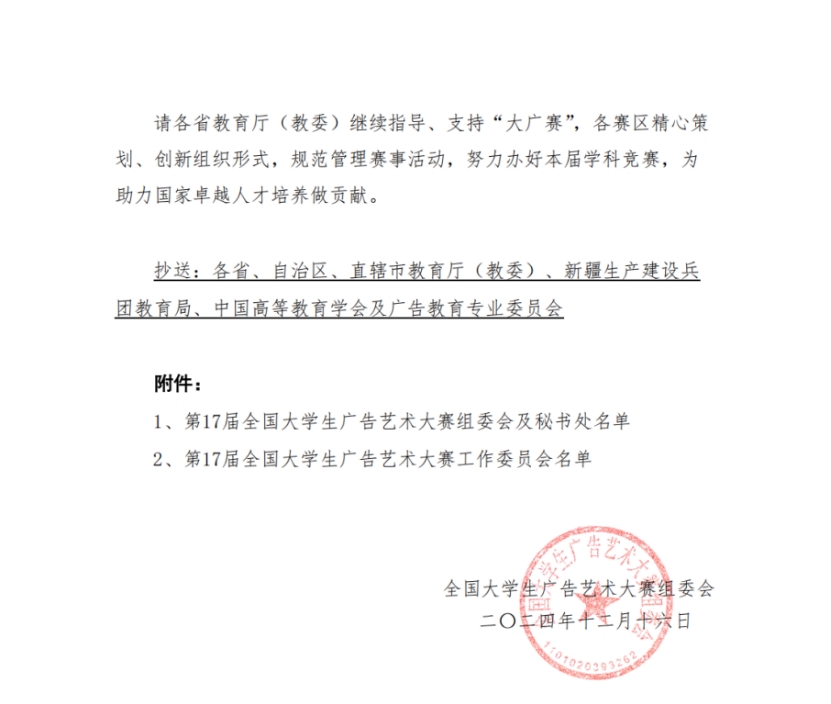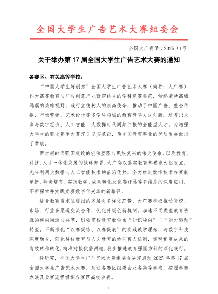 关于举办第17届全国大学生广告艺术大赛的通知