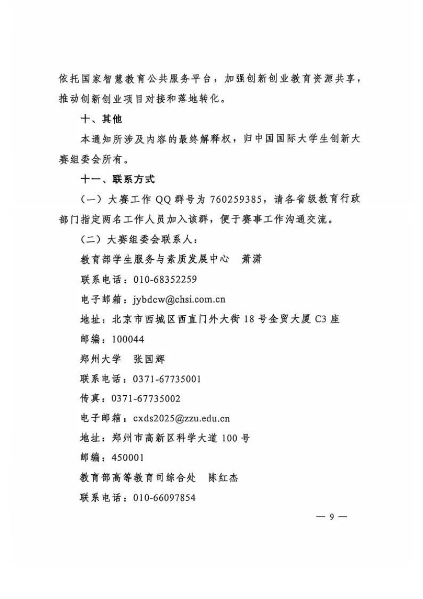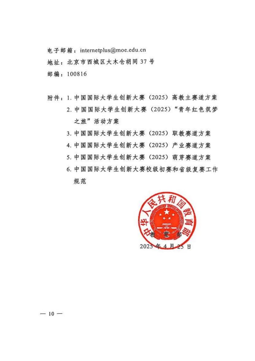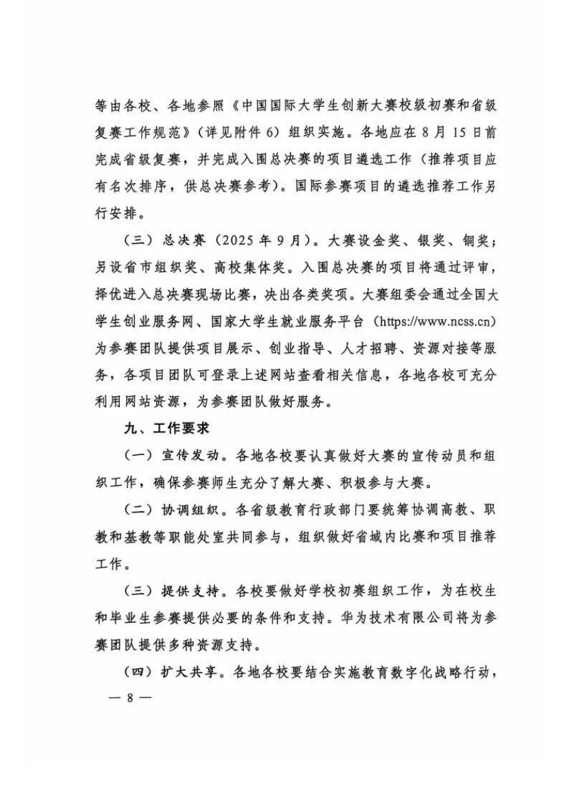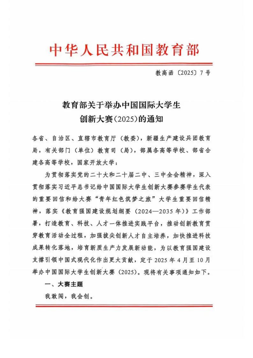 教育部关于举办中国国际大学生创新大赛(2025)的通知