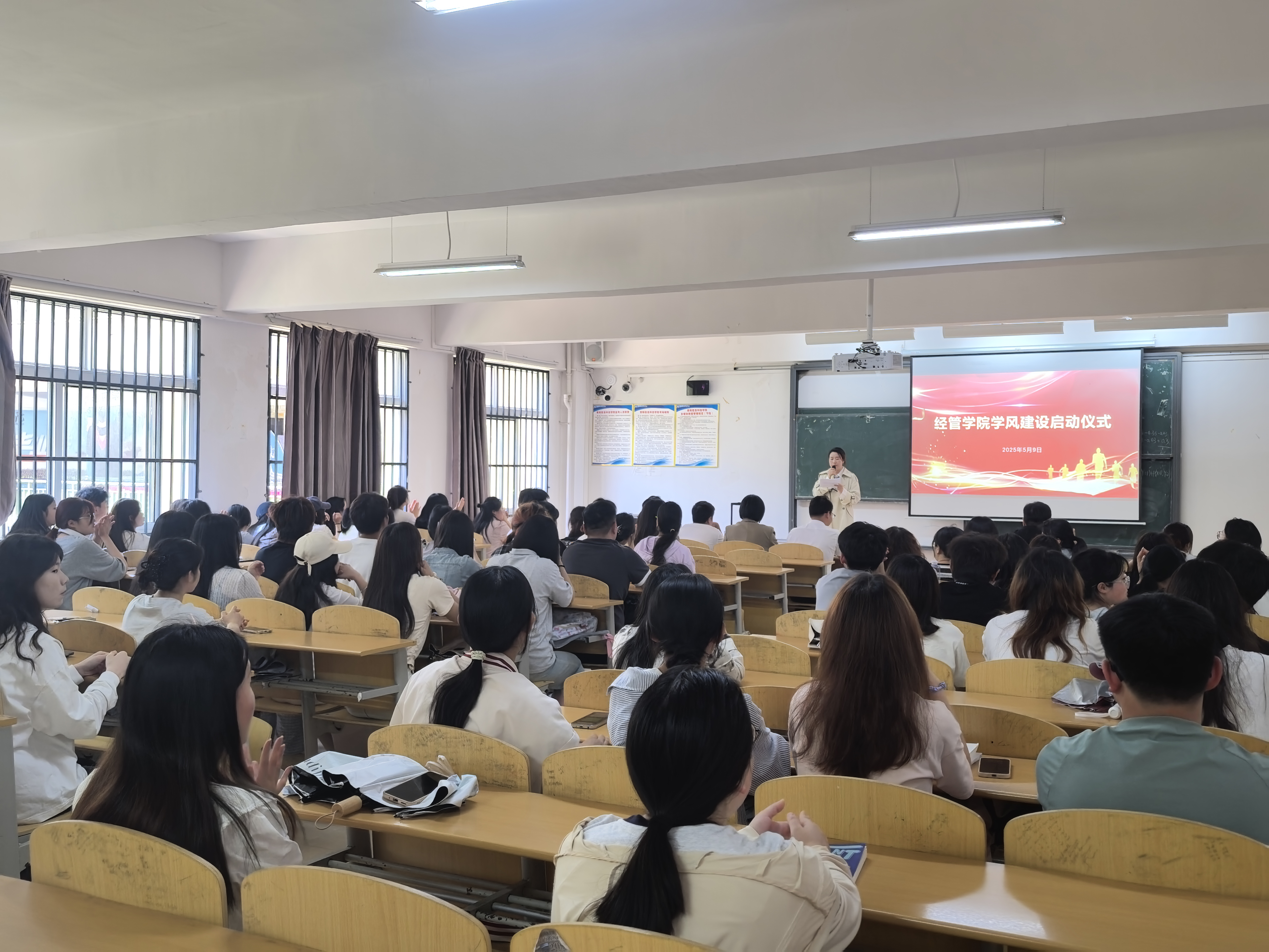 新闻网讯(供稿/供图 经济管理学院)2025年5月9日,经济管理学院学风建设启动仪式在B栋209教室隆重举行。学院领导班子成员、全体专职辅导员及2023级、2024级学生骨干代表齐聚现场,共同见证这一重要时刻,仪式由艾燕芳老师主持。