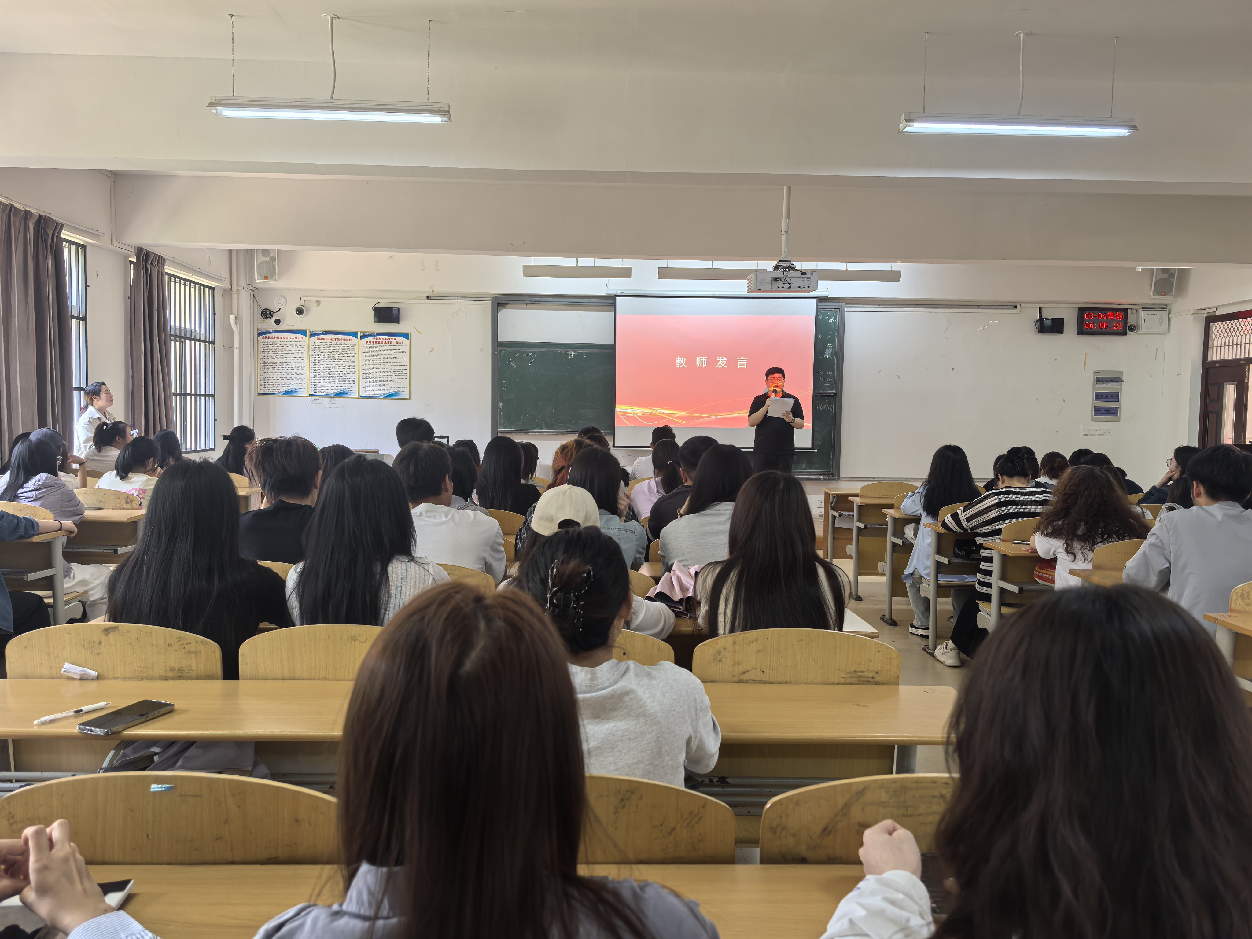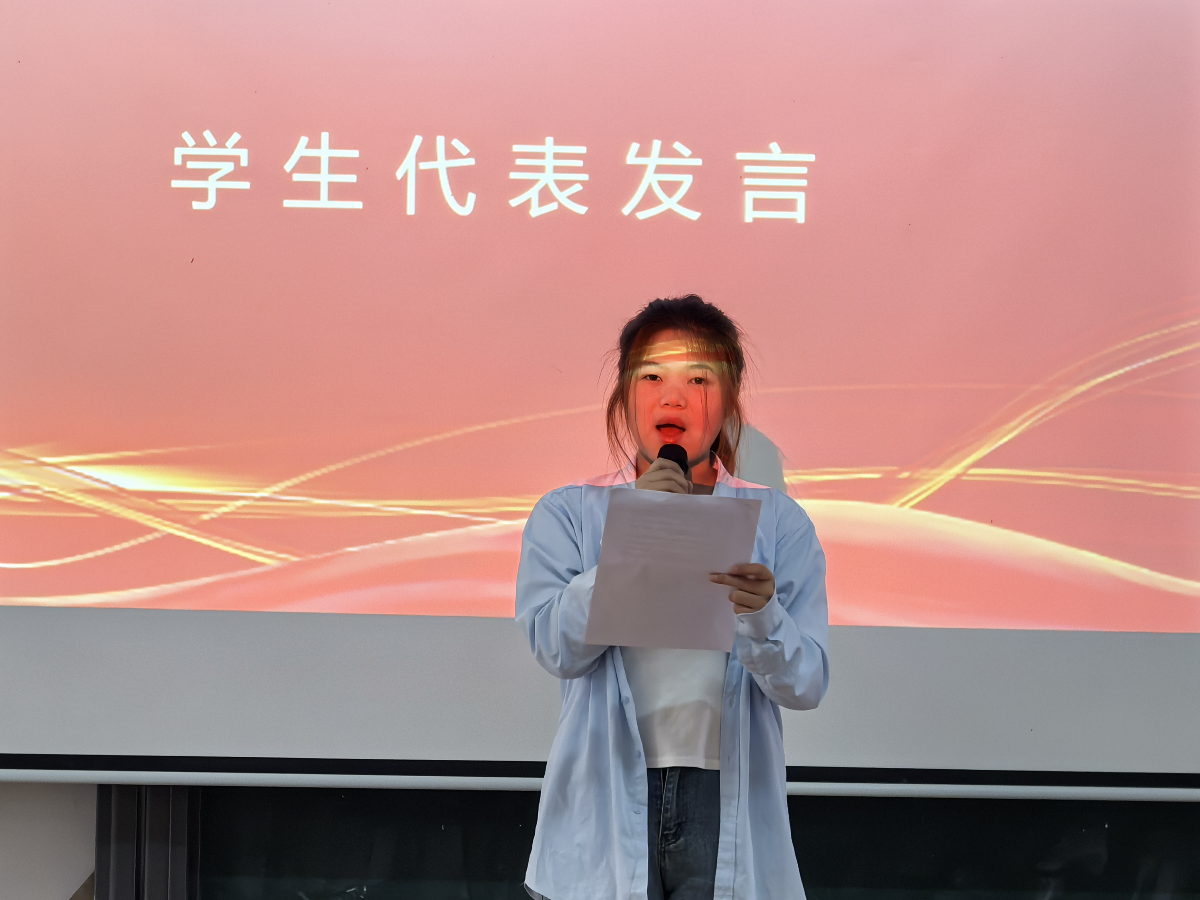 学生代表肖玉林以《经管学生日常行为规范》为切入点,饱含热情地向在场同学发出“学风建设我先行”的倡议,其“严于律己、互促共进”的号召引发强烈共鸣,现场不时响起热烈掌声。