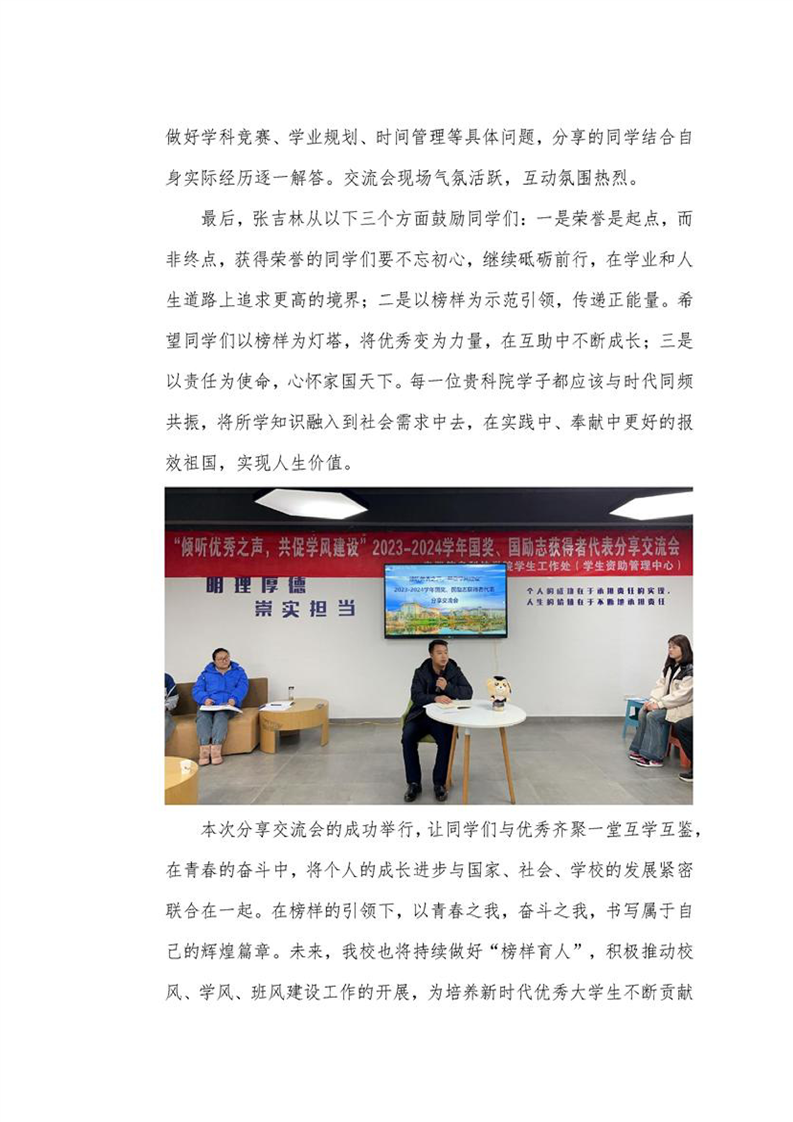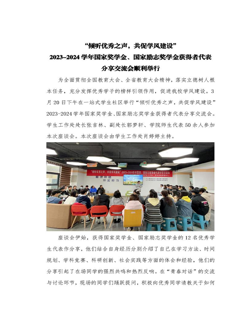 “倾听优秀之声,共促学风建设” 2023-2024学年国家奖学金、国家励志奖学金获得者代表分享交流会顺利举行